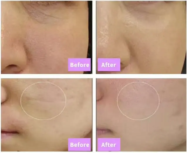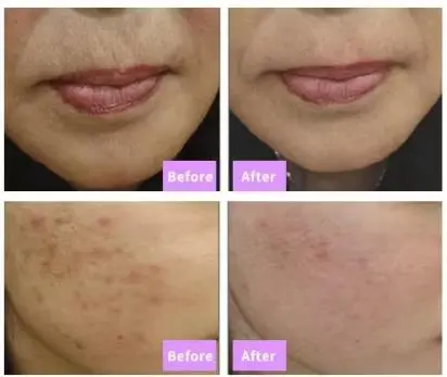 2). Reducción de manchas e imperfecciones de la edad, cicatrices de acné.
