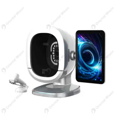 Esta máquina utiliza principalmente principios ópticos para recopilar imágenes de características de la piel como poros, pigmentación, manchas, arrugas y más para un análisis detallado. Los métodos de análisis incluyen comparación de imágenes, explicación del texto y cambios de valor numérico para determinar el tipo de piel.